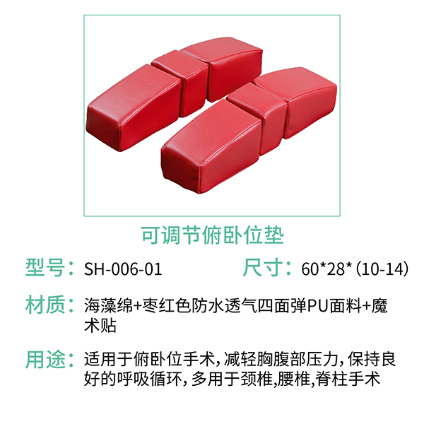 俯臥位墊主要用于手術(shù)過(guò)程中患者的俯臥體位支撐。在進(jìn)行某些手術(shù)時(shí),如脊柱手術(shù)、后路手術(shù)等,需要將患者置于俯臥位,此時(shí)俯臥位墊能夠提供穩(wěn)定的支撐,確保手術(shù)過(guò)程中的體位安全。