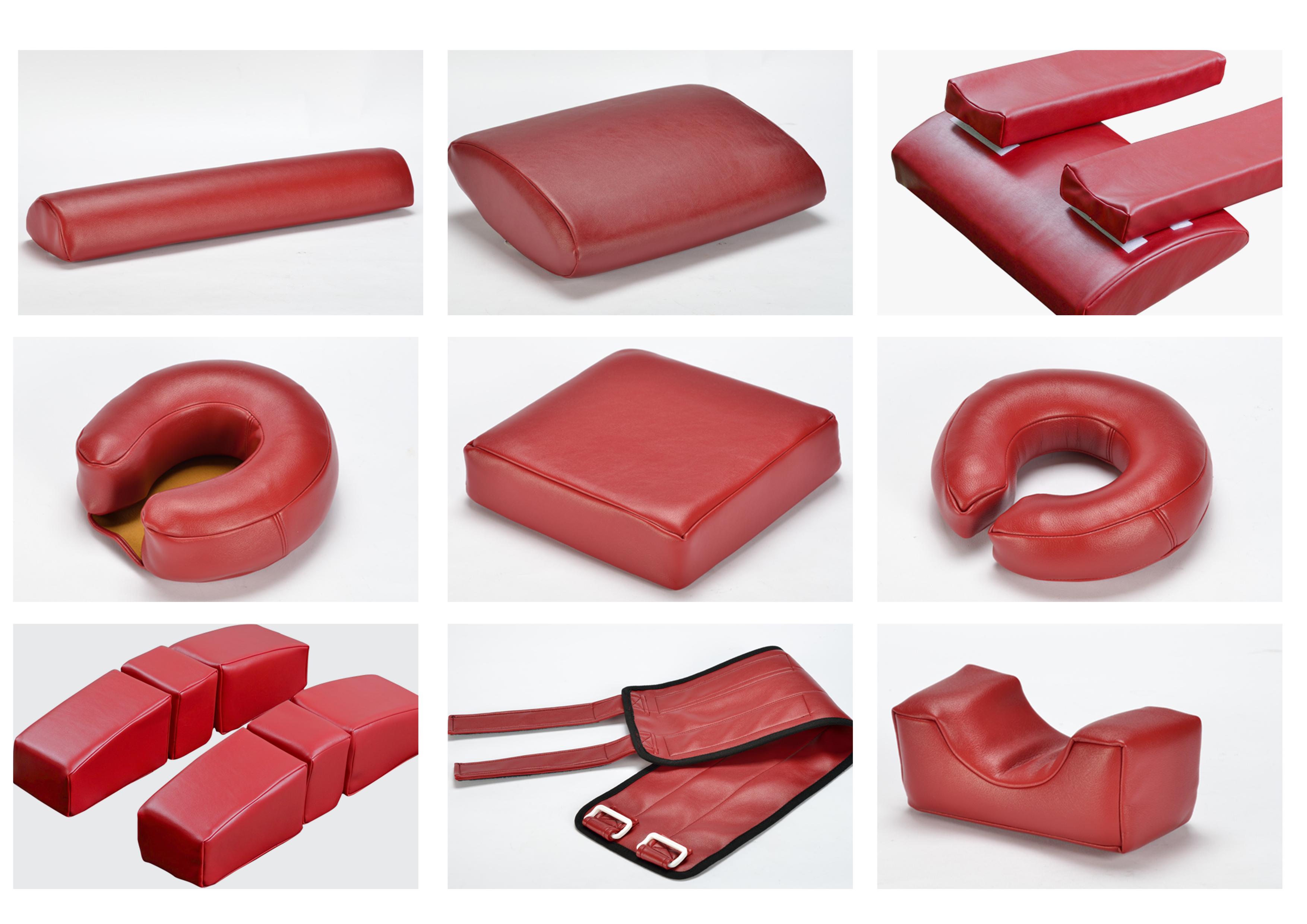 手術體位墊是手術室放置在手術床上的醫用器具,是手術中充分顯露手術野、保持肢體功能位置、防骨突位置受壓、避免因手術體位擺放不好所致神經損傷或壓瘡發生的護理用品。手術體位墊根據不同手術體位擺放及患者部位,可使用不同手術體位墊,如頭圈、肩墊、圓枕、胸墊、髂墊、腿墊、體部約束帶等。不同部位的手術體位墊選用材質略有差異,外套選用棗紅色四面彈防水透氣面料,內里填充材料分別有木棉、海綿、高彈力海綿、慢回彈記憶棉或多種海綿組合拼接,讓使用者更舒適。